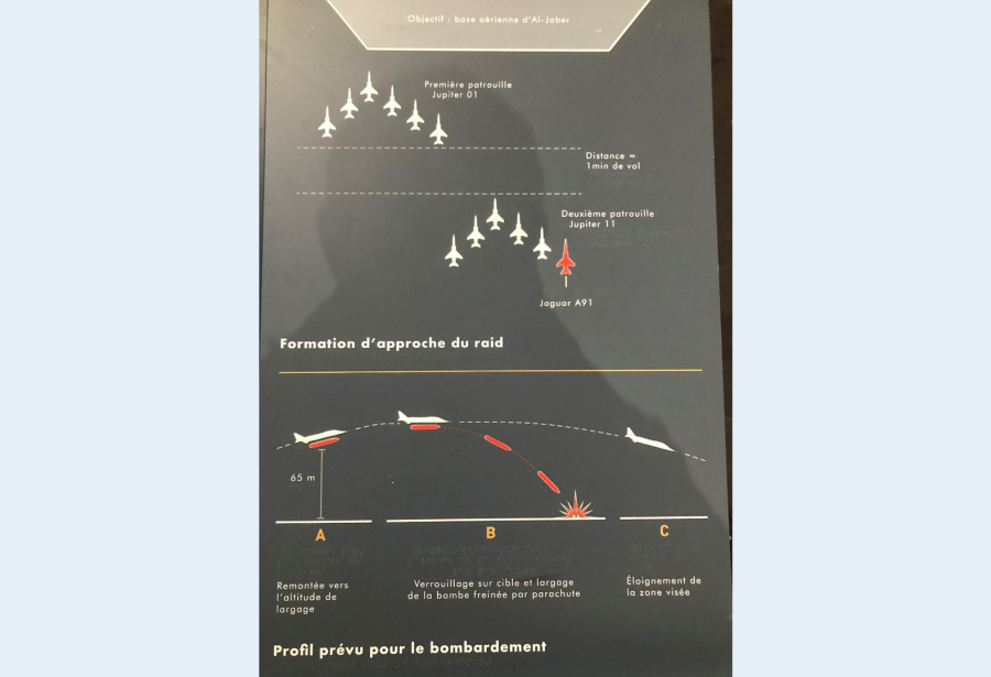 Incrédule à la vue des deux Jaguar blessés se poser en urgence sur sa piste, le commandant de la base d’Al Jubaï invita leurs pilotes à pénétrer dans le Saint des Saints, la salle du commandement général de l’opération Desert Storm, pour constater que leur mission avait en fait consisté à survoler… les trois points les mieux défendus du territoire koweitien…