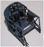 La réalisation du poste de pilotage, de sa structure tubulaire très bien rendue, des instruments de bord, du siège et le rattrapage d’une erreur au niveau de la planche de bord demandera beaucoup de temps, car tout sera très visible une fois la maquette terminée. J’ai en effet décidé de laisser la verrière coulissante ouverte. Une fois terminé, je souligne les détails par un brossage à sec des arêtes et l’infiltration de peinture sombre très diluée dans les creux pour donner artificiellement du relief.