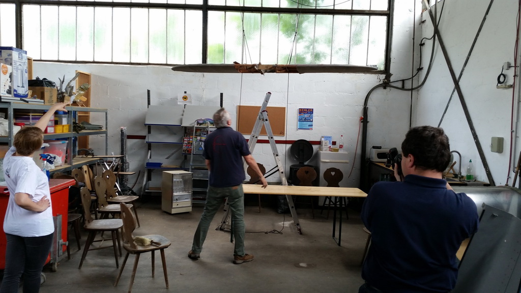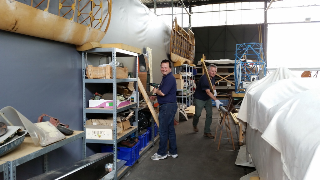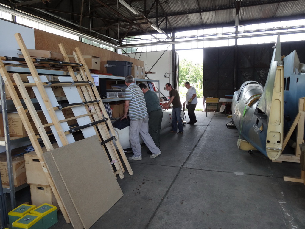 Le montage terminé, et après une petite pause réparatrice, il nous restait LE plus gros morceau. Juste une petite aile de 500 kg à ranger délicatement, là encore les neurones ont fonctionné pour trouver la meilleure manoeuvre. Avec un résultat plus que satisfaisant.