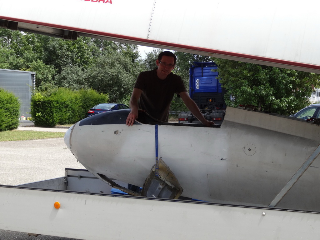 Opération "planeurs" - pas simple de ramener les planeurs de la zone de stockage du hall fret vers le hangar C&B, mais une bonne équipe, des bras (des jambes !!), beaucoup de bonne volonté et du bon matériel et ça le fait. La journée commencée à 10 h c'est terminée vers 18h avec un constat. On Y Est Arrivé !! Merci à Bruno, Eric, Etienne, Henri, Jean-Claude et Roland. Merci au Club de Vol à Voile du Polygone pour le prêt de la remorque.