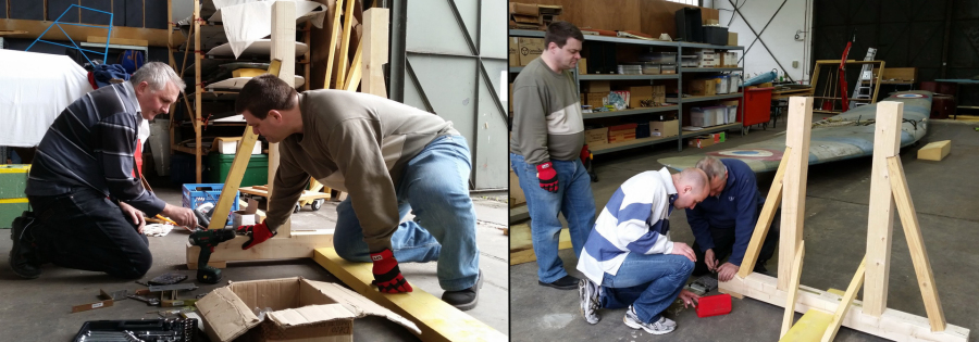 Avant de commencer une quelconque activité il nous fallait donc ranger un peu la zone !! mais par où commencer ? Et bien, il suffisait de demander à notre spécialiste, Henri, dit Tonton Riton le "Bati Sir", qui une nouvelle fois nous a concocté un bati capable de caser l'aile du Dewoitine...