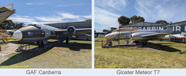 Le parc accueille des appareils de grande taille qui sont en parfait état de conservation. On y trouve un English Electric Canberra Mk 20 qui sera le premier bombardier à réaction acquis par l’Australie, un Gloster Meteor T7 biplace d’entraînement pour les futurs pilotes de Meteor F8, un Fairey Gannet XG 789, avion de lutte anti sous-marine embarqué à bord du HMAS Melbourne qui a pris part notamment, en 1965 et 1966, à la guerre du Vietnam.