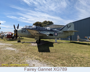 Le hangar principal accueille deux appareils qui ont servi dans la Royal Australian Navy (RAN), Le De Havilland DH 112 Sea Venom N4 –901 et le Fairey Firefly WD 827. Le premier, un intercepteur biplace commandé à 39 exemplaires en 1954 servait sur le porte- aéronefs HMAS Melbourne, le second acheté, en 1949, à 108 exemplaires était basé sur le porte–aéronefs HMAS Sydney, il servait essentiellement à la lutte anti-sous-marine.