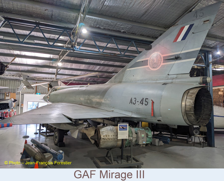 Son remplaçant au sein de la RAAF, le Dassault Mirage A3 –45 est issu d’une commande de 114 appareils passée auprès de la France en 1960. Ils seront pour la plupart construits sous licence en Australie par la Government Aircraft Factory (GAF) prés de Melbourne. Ils verront du service au sein des escadrons 3, 77, 79 et de l’escadron de transformation opérationnelle n°2 jusqu’ à leur retrait en 1988.