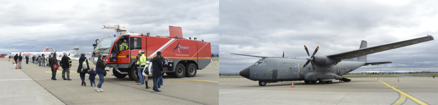 Sur le tarmac les visiteurs ont également pu visiter des appareils des compagnies aériennes (Hop et Volotea), un Transall de l'Armée de l'air et des véhicules de piste (pompier et déneigement).
